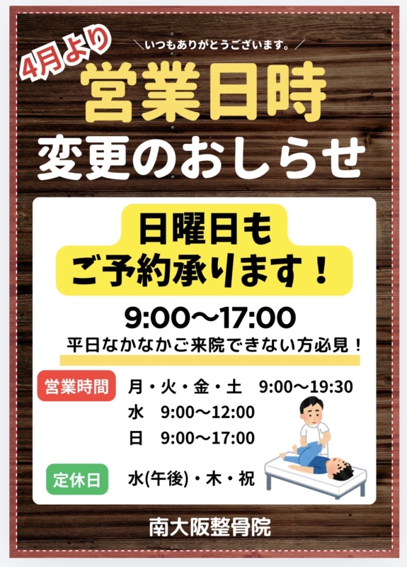 4月より営業日時を変更させて頂きます。