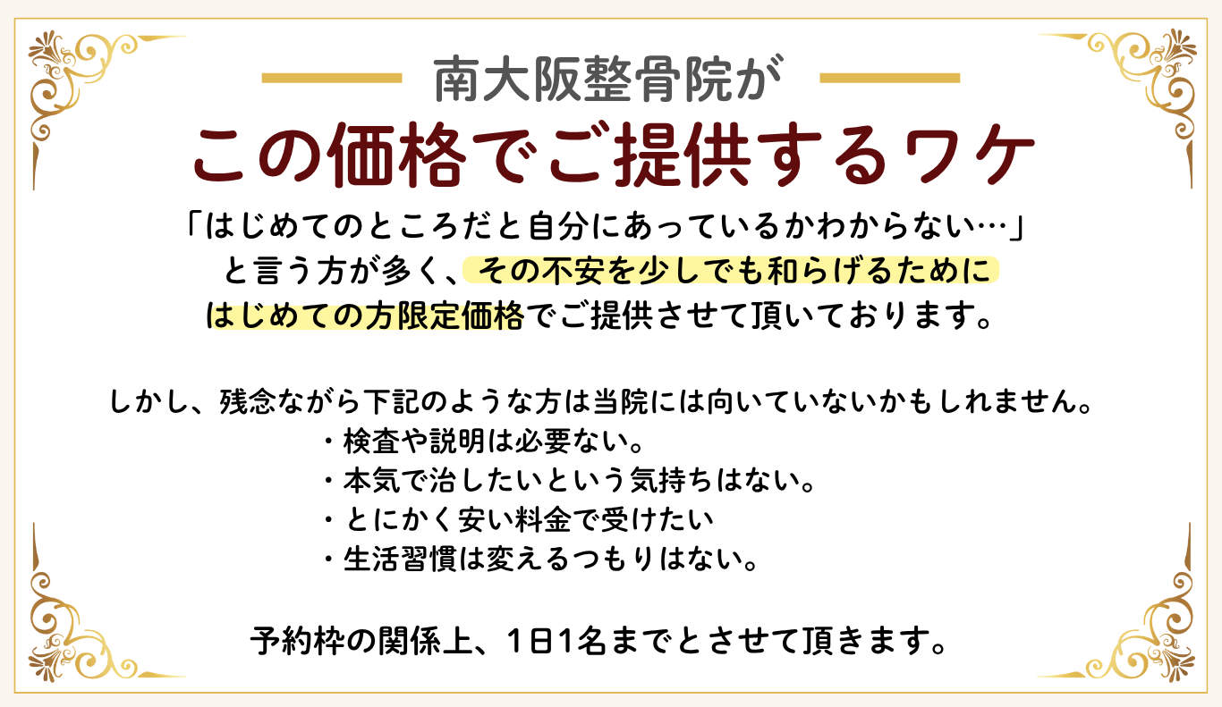 南大阪整骨院は 「 当日予約OK 完全予約制 」 です。